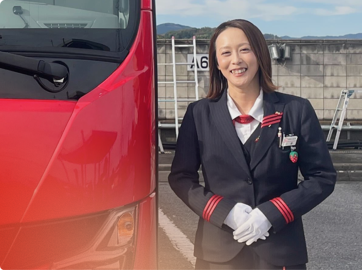中学生の修学旅行で出会ったガイドの方に憧れ、高校卒業後、バスガイドの道へ。